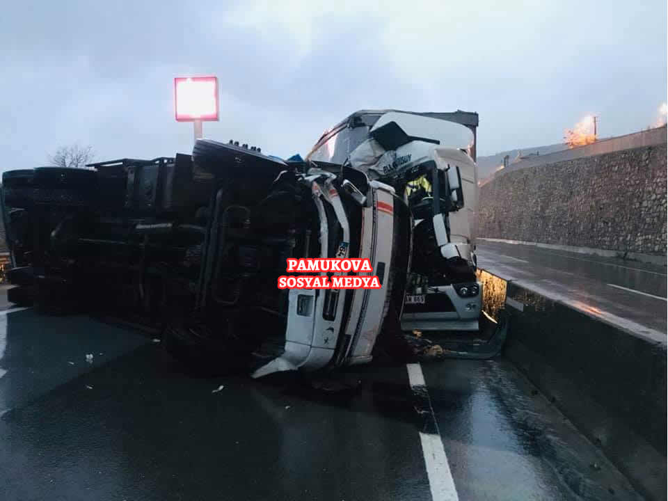 D-650 karayolu Geyve Bağlarbaşı mevkiinde TIR kamyona çarptı. Savaş alanına dönen yolda trafik durdu.