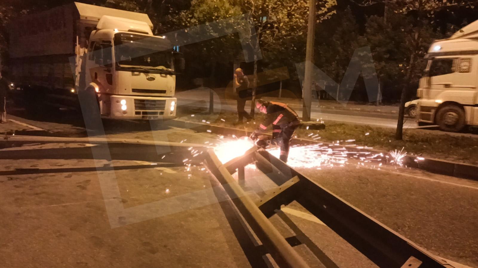 Pamukova D-650 Kara Yolu’nda direksiyon hâkimiyetini kaybeden Tır Sürücüsü bariyerlere çarptı. Çarpmanın etkisi ile bariyerlerin savrulduğu kazada Bilecik istikameti ve Pamukova İlçe girişi ulaşıma kapandı..